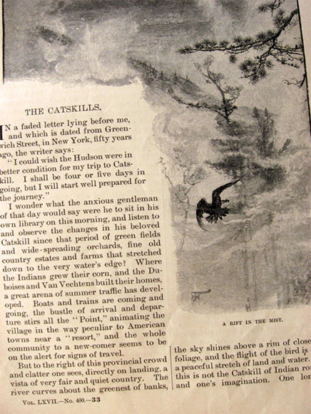 Original illustrated magazine article that has been carefully extracted from a well known antique periodical. An early look at the Catskills in the Hudson Valley, NY.