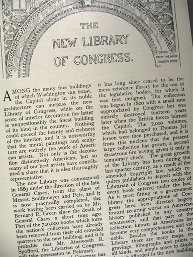 This is an original illustrated magazine article describing the new headquarters for the Library of Congress that has been carefully extracted from a vintage/antique periodical.