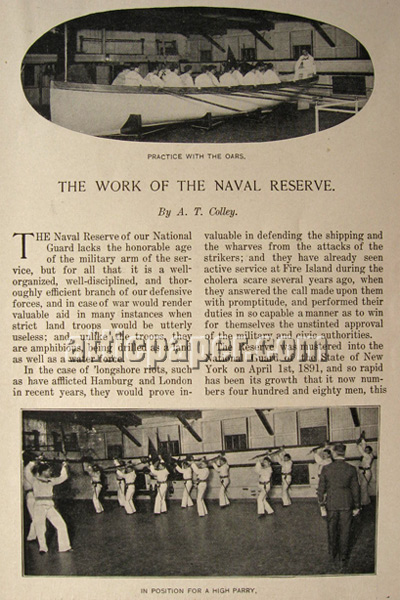 ï Practice with the Oars ï In position for a high parry ï The task of the regulation sea-dog--splicing rope ï On the Gun Deck ï Training hand and eye in gatling gun practice ï Stacking arms by interlocking bayonets ï A set-to with broadswords
