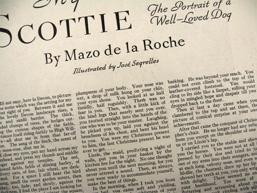 This is an original illustrated story about a well loved Scottie dog that has been carefully extracted from a vintage/antique periodical. Written by Mazo de la Roche with full page illustration by Jose Segrelles.