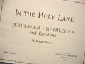 This is "In the Holy Land," Jerusalem, Bethlehem, and Environs. 36 Artistic Views. Scarce booklet with nice quality photogravure, mostly full page prints. Some pages contain two smaller prints. Pages are printed back to back.