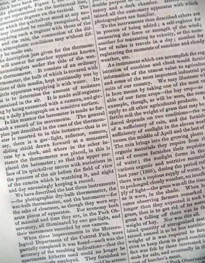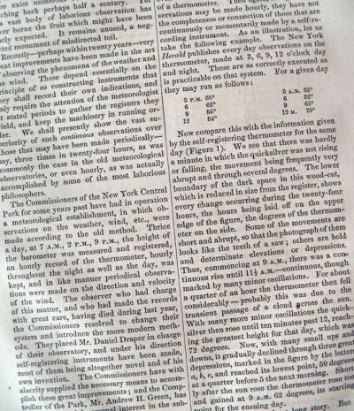Original illustrated magazine article that has been carefully extracted from a vintage/antique periodical. A look at weather forecasting focusing on the Central Park Observatory.