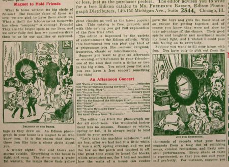 Original vintage print advertisement for the Edison No. 5 Phonograph Outfit. Wonderful large size, full page ad contains many reasons why consumers would want to buy this outfit.