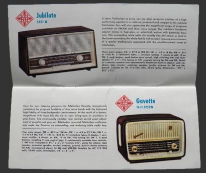 Original 1962 Telefunken Brochure/Catalog featuring Table Radios (including Jubilate, Gavotte, Andante, Concertino, and Kavalier models), Consoles, and Tape Recorders.