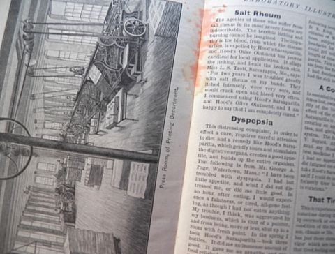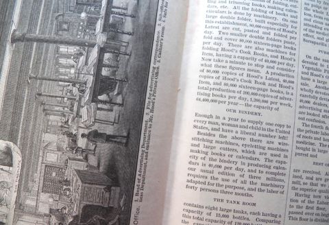Original antique promotional booklet from Hood's Sarsaparilla: "Hood's Sarsaparilla Laboratory." Undated, but undoubtedly from the 1880's/1890's. Great little booklet with all kinds of neat info about the company. Also contains customer testimonials. Fully illustrated. Illustrations include: - Early Homes of Hood's Sarsaparilla- West or Railroad side of Laboratory- Front or East Side of Laboratory- Main Office (interior)- Bottling & Packing Room- The Bindery- Press Room of Printing Dept.