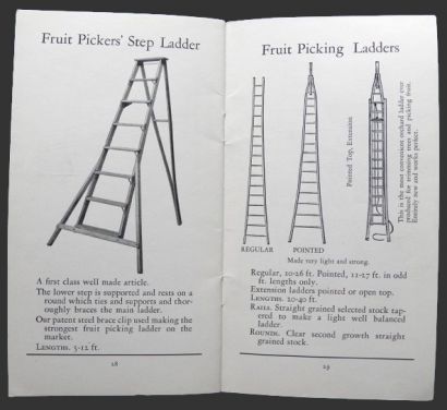 Includes Extension Ladders, Extension Planks, Extension Trestles, Fruit Picking Ladders, Ladder Jacks, Scaffold Irons, Safety Brackets, Sectional Ladders, Single Ladders, Step Ladders, Swing Staging, Window Cleaner Ladders, Window Jacks, and Wire Cable Safety Construction.