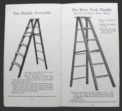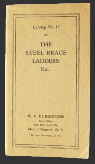 Original Illustrated Catalog (Catalog No. 17) of Steel Brace Ladders, Etc. from the W.E. Burroughs Company in Mount Vernon. We could not determine the exact year of publication, but in our research, we found a reference to Catalog No. 14 from 1913, so we estimate this catalog to be circa 1920's.