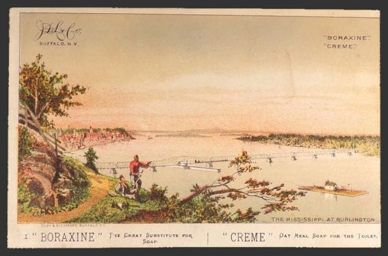 Description: Antique Victorian trade card. The Mississippi at Burlington