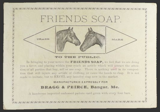 Advertising Text: Friends Soap, Manufactured expressly for Bragg & Peirce, Bangor ME
