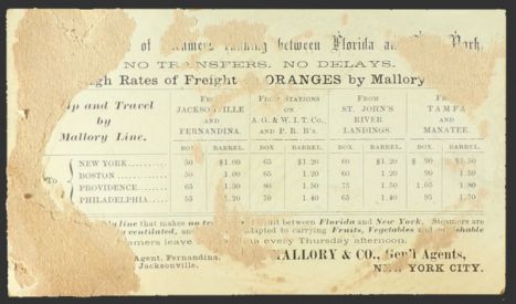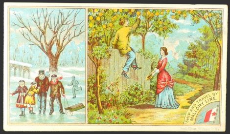 Description: Antique Victorian trade card. Ship and Travel by Mallory Line. Reverse side contains rates