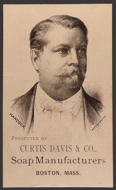 Description: Antique Victorian trade card. Features an image of Winfield Hancock, Civil War General and Democratic presidential nominee.
