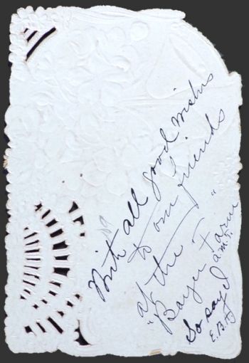 Description: Lovely Victorian die cut, embossed greeting card. One sided (doesn't open up). Used, has handwritten greeting on reverse.
