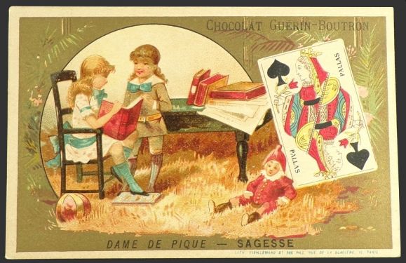 Advertising Text: Chocolat Guerin Boutron. Dame de Pique (Queen of Spades), Sagesse (Wisdom)